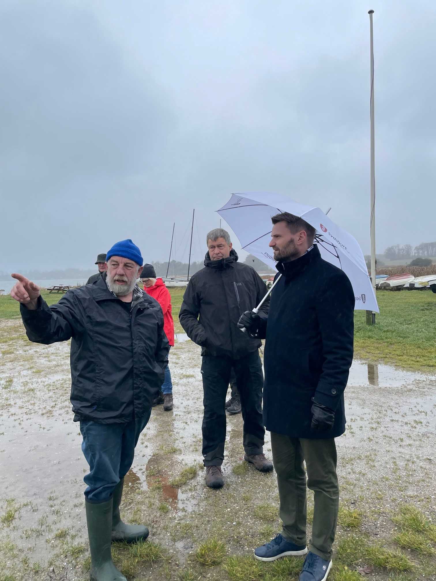 Bådelauget arbejder utrætteligt for at holde omgivelserne indbydende for sommer - og sejlergæster. Blandt andet har de etableret bordbænke-sæt, ligesom der er toiletter og infostander på pladsen. De fik en snak med borgmesteren om aktuelle problematikker, såsom oversvømmede arealer ved store regnskyl (aktualiseret af dagens smattede underlag) og parkeringsproblemer på varme sommerdage, hvor mange kommer til området i bil for at bade fra den børnevenlige, lavvandede strand.