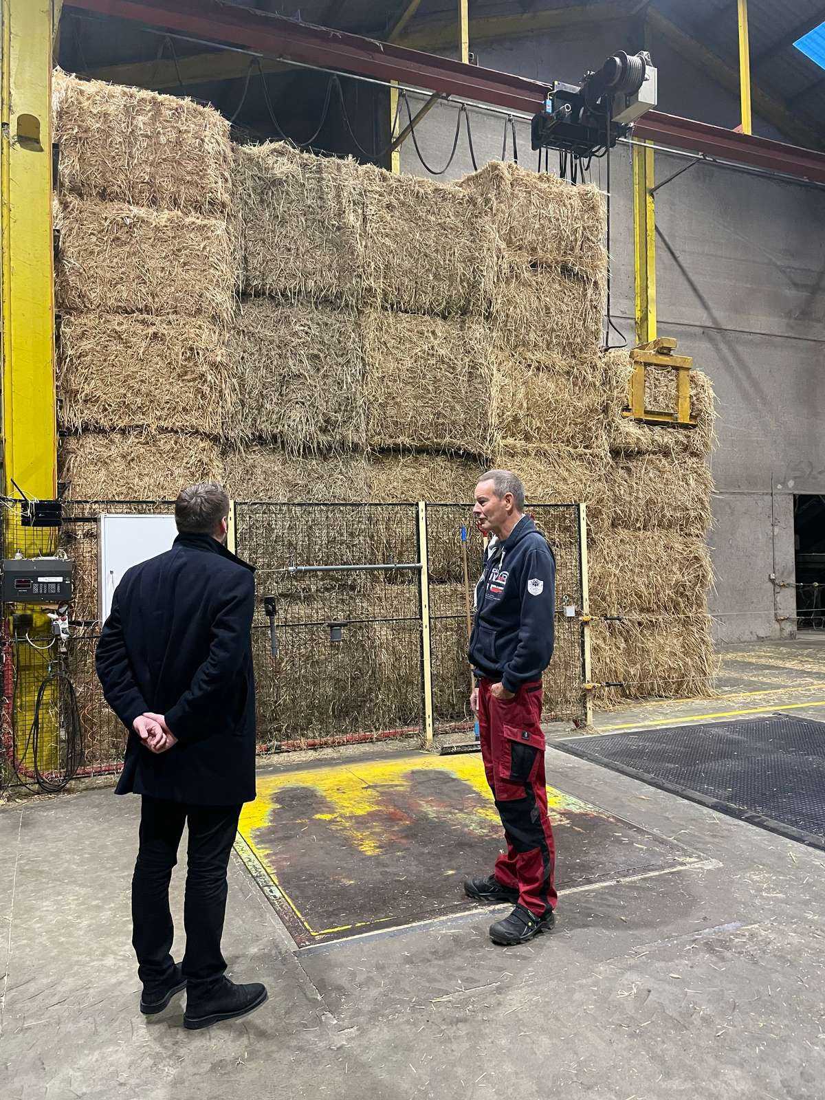 Brændselskilden er halm, og Borgmesteren kom helt tæt på arbejdsgangen med at flytte de store halmballer videre i systemet. Skulle behovet opstå, er der en akkumuleringstank og en oliefyret kedel klar som sikkerhed.