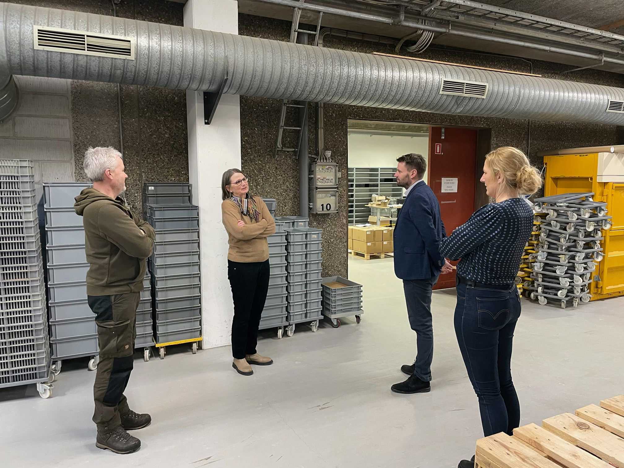 Herefter var der besøg på Molsværket på Lyngevej, hvor man er i den absolutte slutspurt forud for åbningen den 26. april. Her mødte Borgmesteren med værkfører Pia Katballe og formand for Ejendomsfonden Molsværket Grith Mortensen.