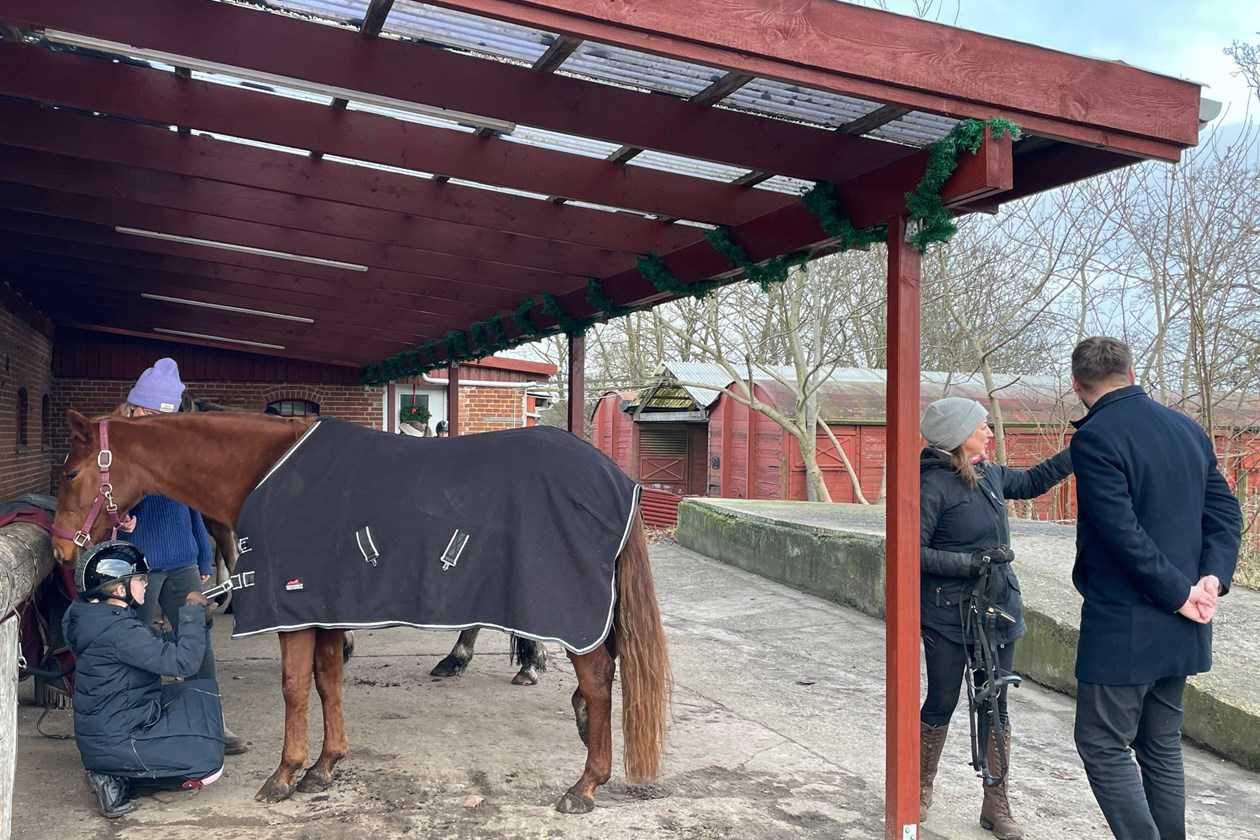 Herefter var det tid til et sceneskifte. Det mobile borgmesterkontor trillede ud til Kongsvad Rideklub på Stationsvej 46. En række personer tog imod, heriblandt bestyrelsesformand Kristine Villadsen.