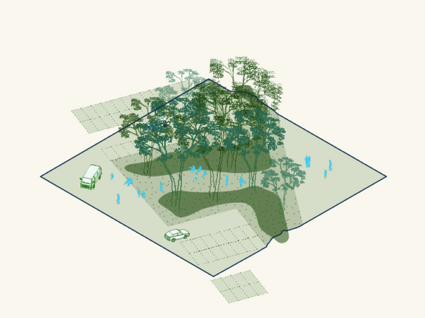 BOGL foreslår at der arbejdes med et mere sammen hængende og grønt parkeringsareal ved Fregatten Jylland. Et område som dermed kan få nye funktioner og øget kvalitet.