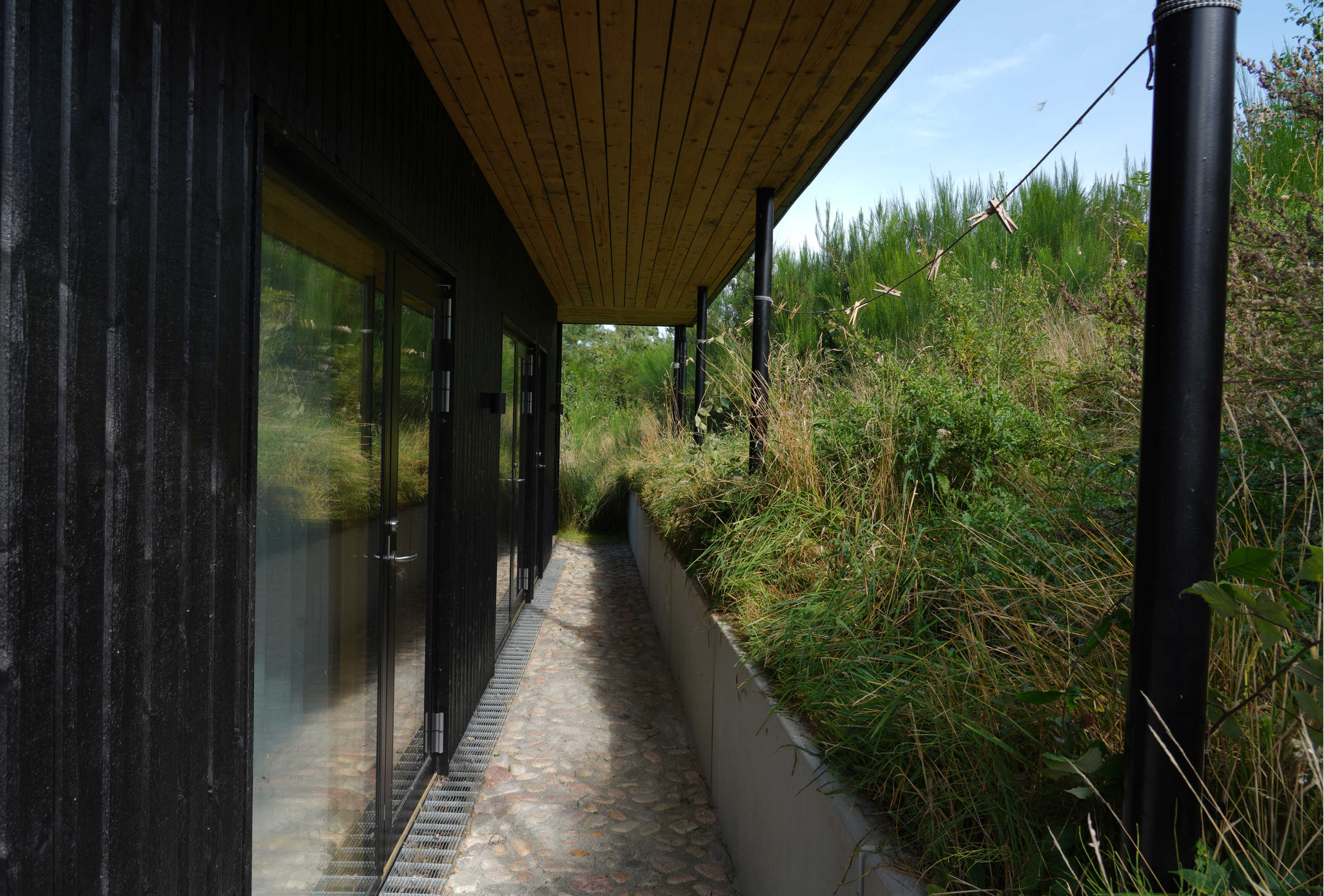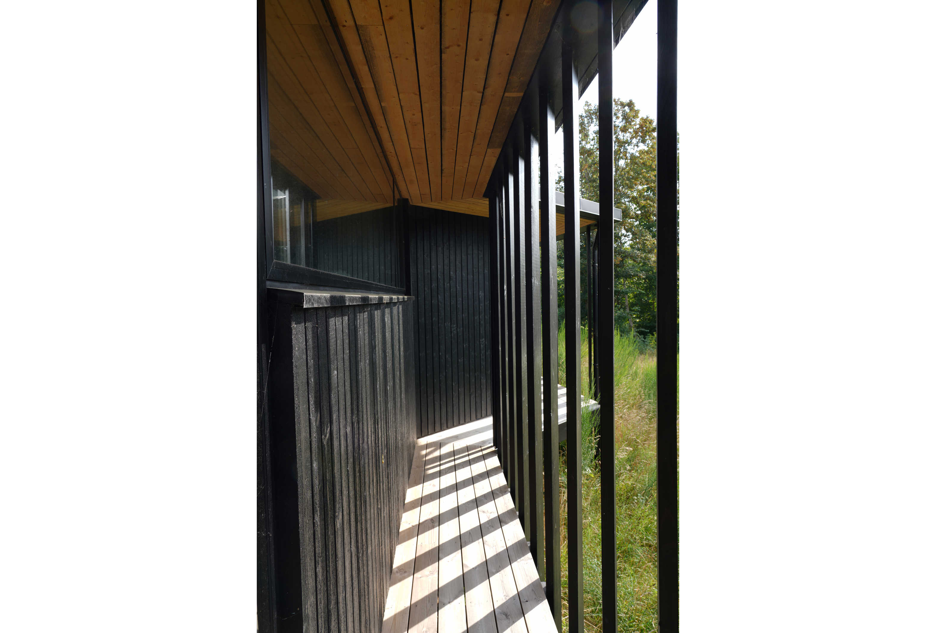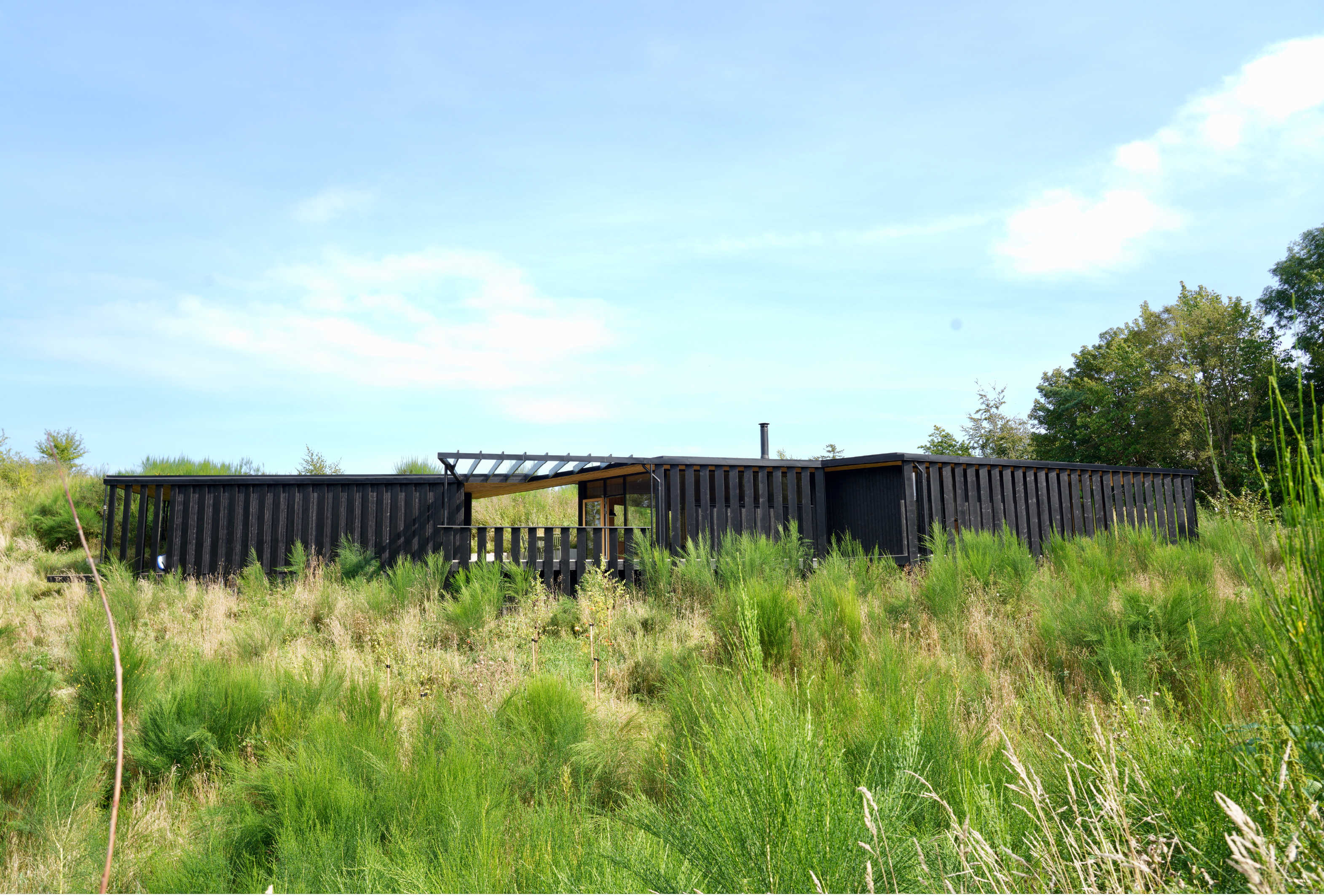 Byggeriet, et 114 m2 stort sommerhus inklusive et anneks, var klar til indflytning i 2023. Det første indtryk af sommerhuset på naturgrunden, der er “vild med vilje”, er en fornem indpasning og et byggeri med en poetisk, svævende lethed.
