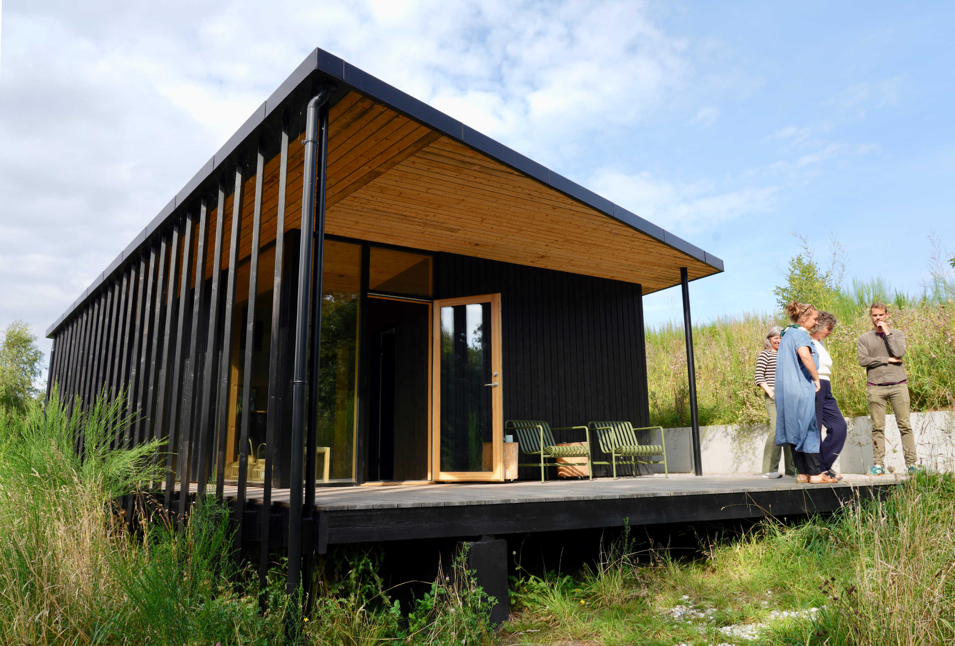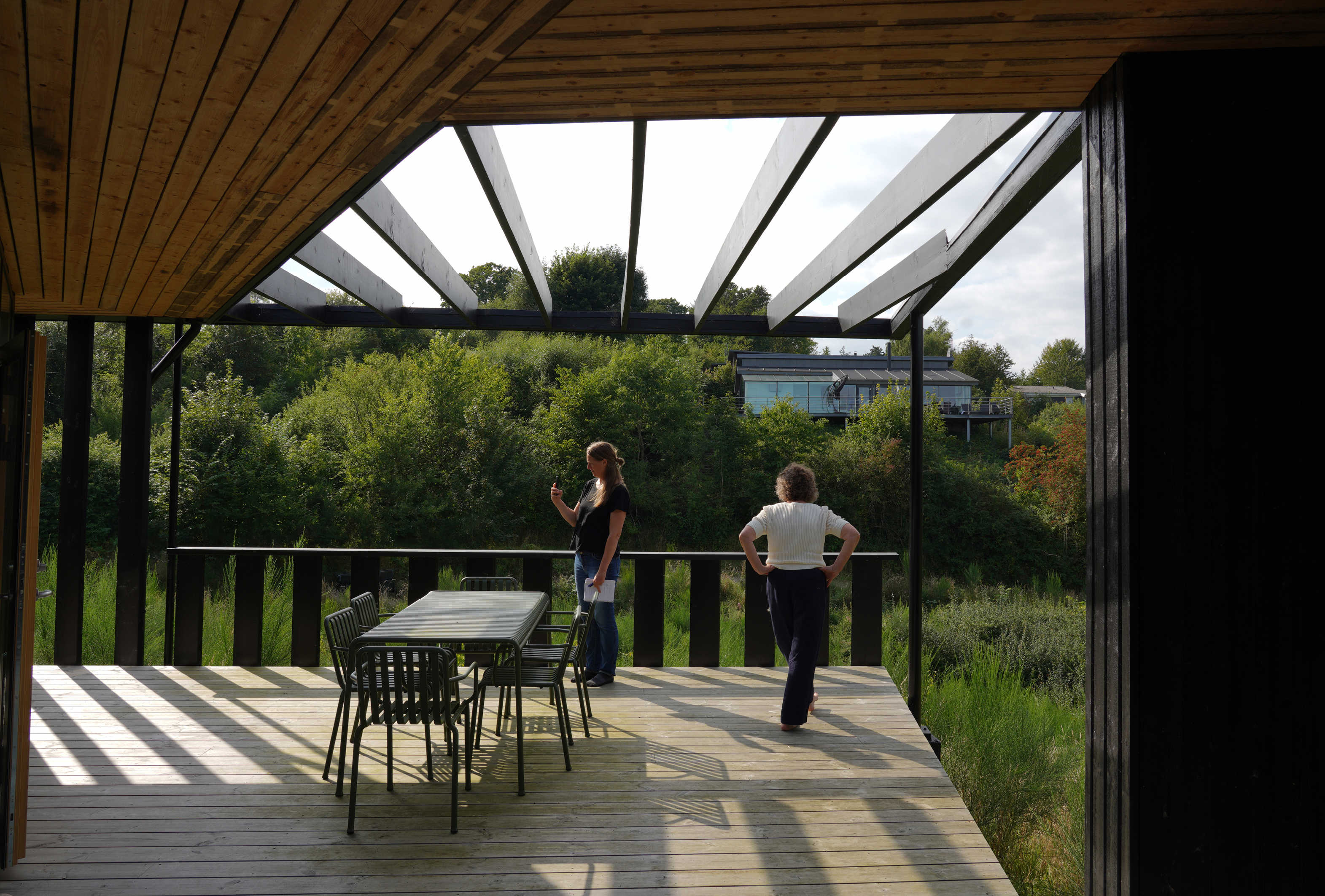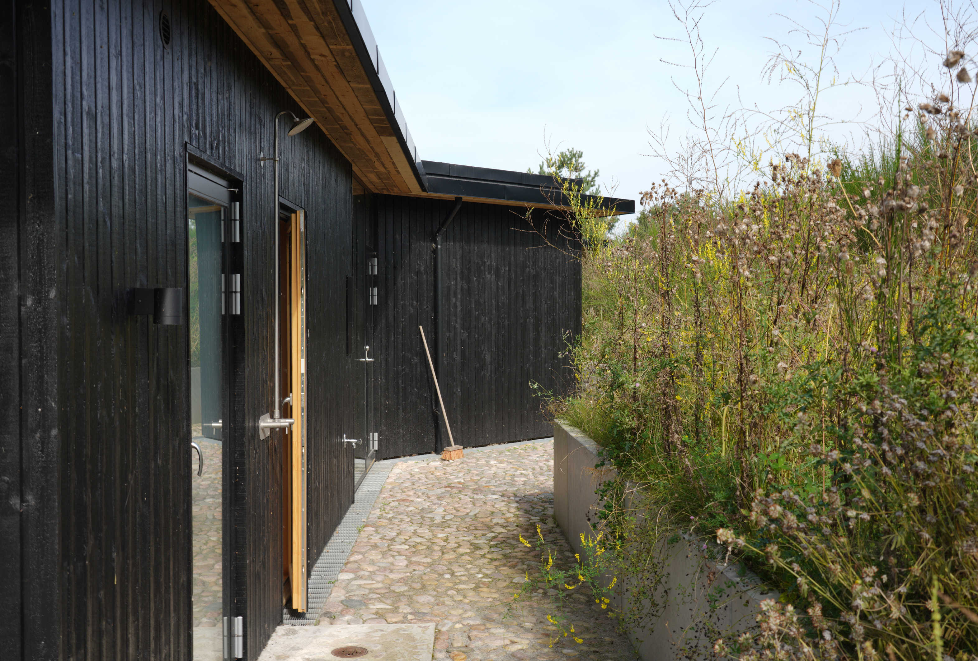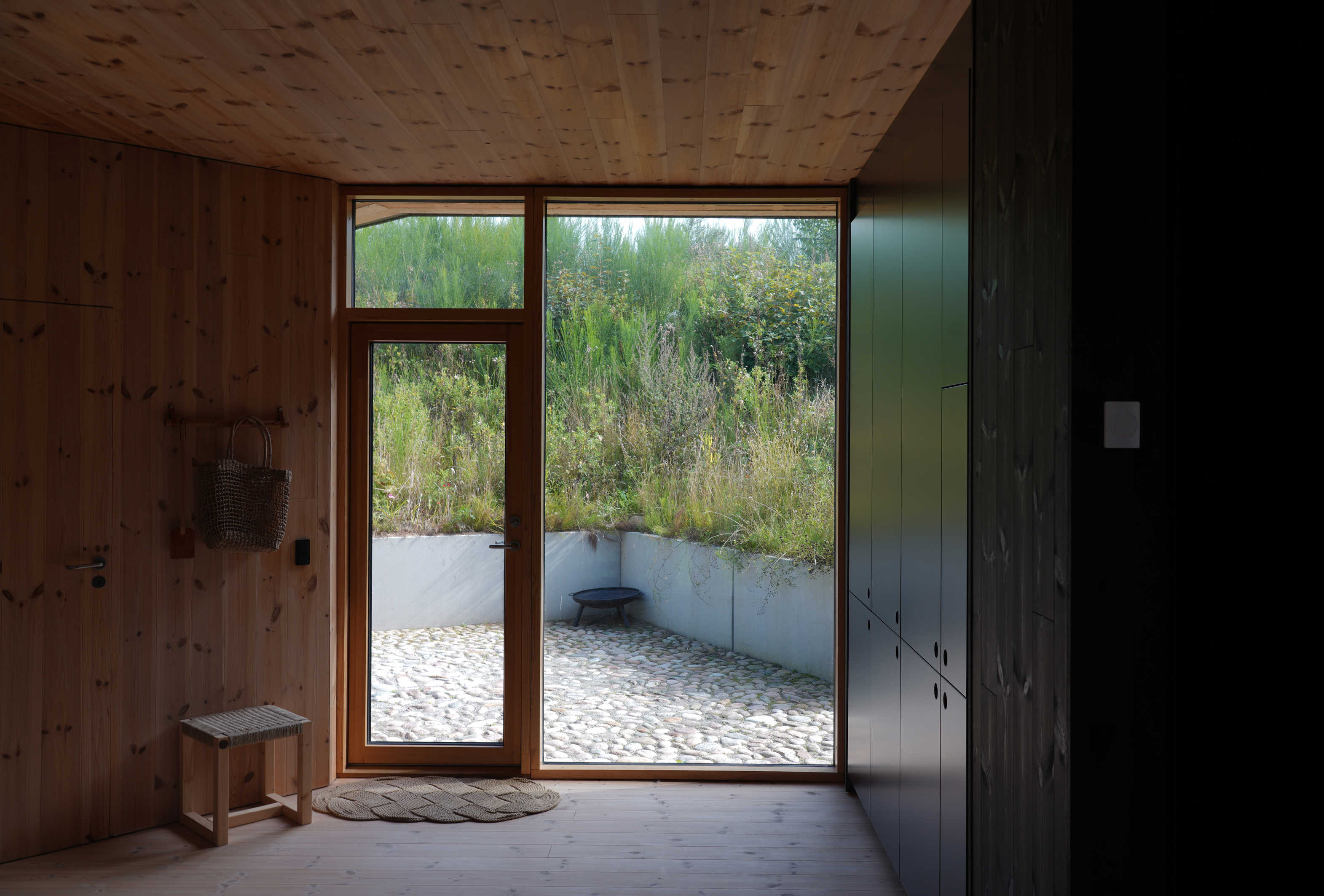 Byggeriet, et 114 m2 stort sommerhus inklusive et anneks, var klar til indflytning i 2023. Det første indtryk af sommerhuset på naturgrunden, der er “vild med vilje”, er en fornem indpasning og et byggeri med en poetisk, svævende lethed.