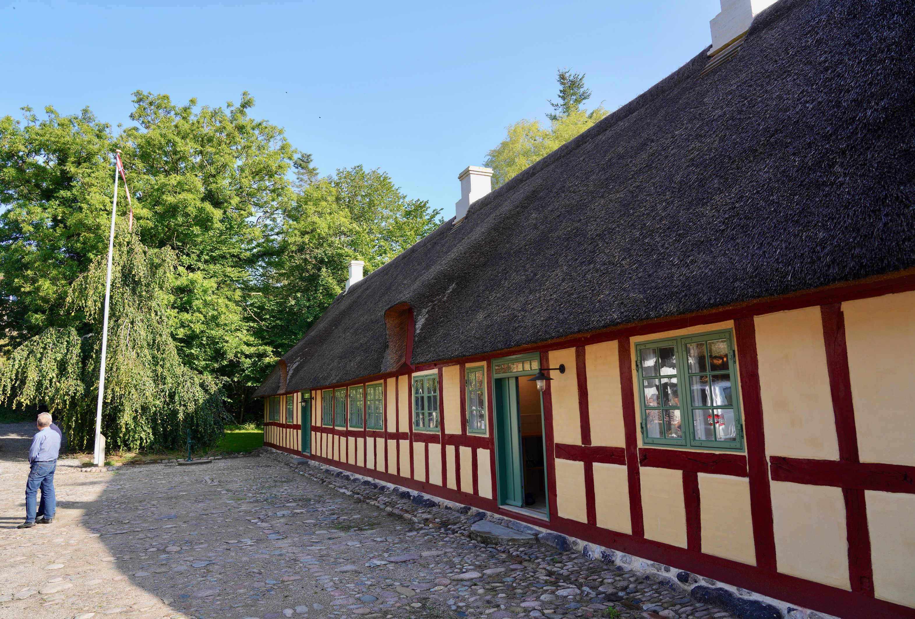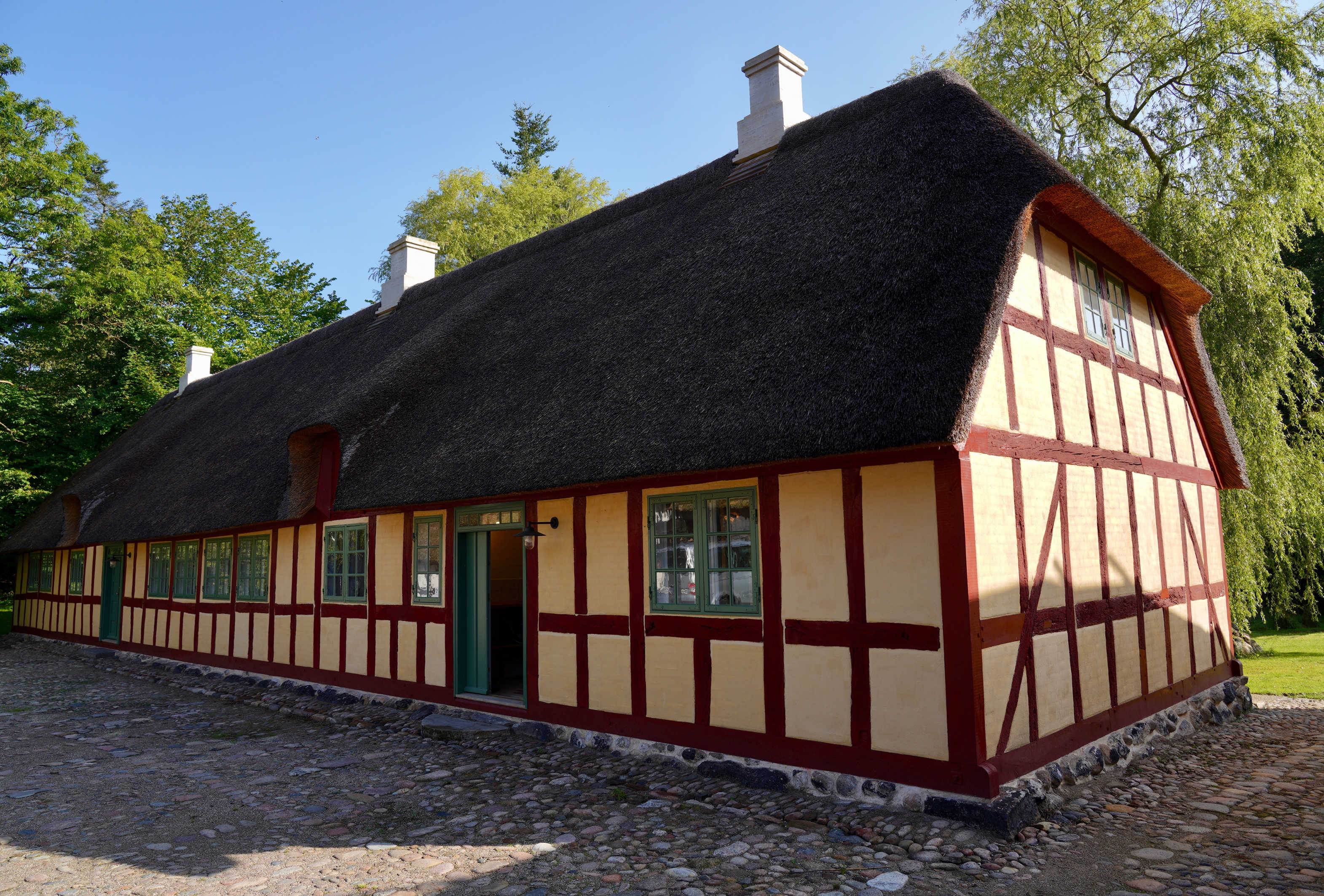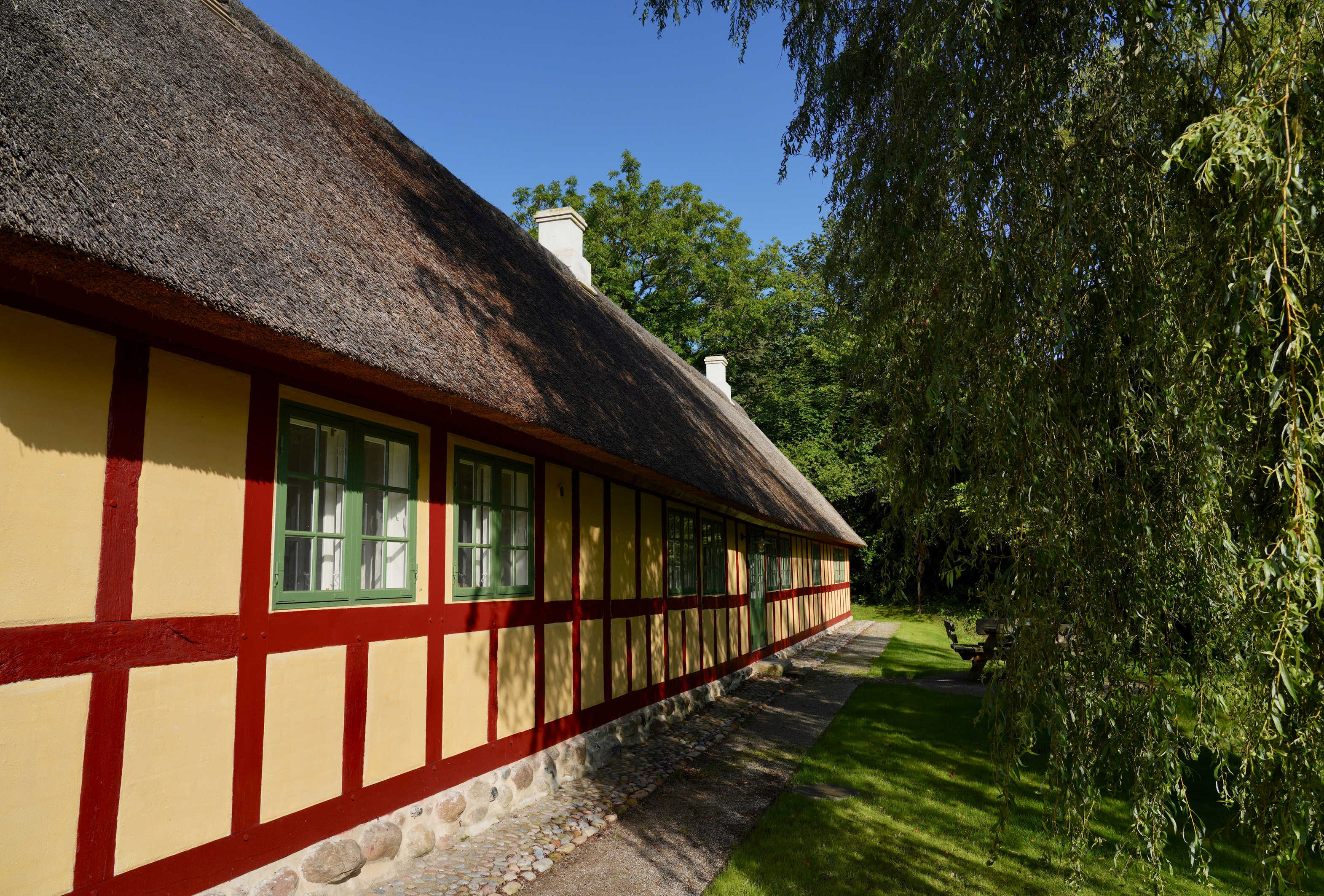 Hovedhuset er omhyggeligt tilbageført til det oprindelige som et langt, overordentlig smukt, stråtækt længehus i bindingsværk. Den store gårdsplads mod syd mellem længerne er stadig belagt med de gamle pigsten. Mod nord er haven anlagt med græsplæne, genetableret gangsti langs huset og et bevaret centralt stort træ. Udefra fremstår facaderne harmonisk med rytmisk fordeling af firkantede tavler og roligt arrangement af vinduer og døre. De to gavle er ens og symmetriske med skråbånd. Den oprindelige markante farvesætning er modigt genanvendt: Rødt bindingsværk, gulkalket murværk og græsgrønne vinduer. Vinduerne er nye, men opbyggede i hånden og i overensstemmelse med gamle håndværkstraditioner. Hvor det har været nødvendigt, er rem og bindingsværk udskiftet så nænsomt som muligt. Den indvendige renovering er udført med udsøgte materialer, revitaliserede genbrugsdøre og nænsom bevaring af detaljer og særegenheder. Centralt i køkkenet står en monumental åben pejs genopført som husets anker. Valget af ruminddeling afspejler i vid udstrækning det oprindelige. I den østlige ende af længen er rummene renoveret med valg af lyse farver, mod vest med udsøgte kombinationer af de smukkeste almuefarver. Den håndværksmæssige kvalitet er forbilledlig.