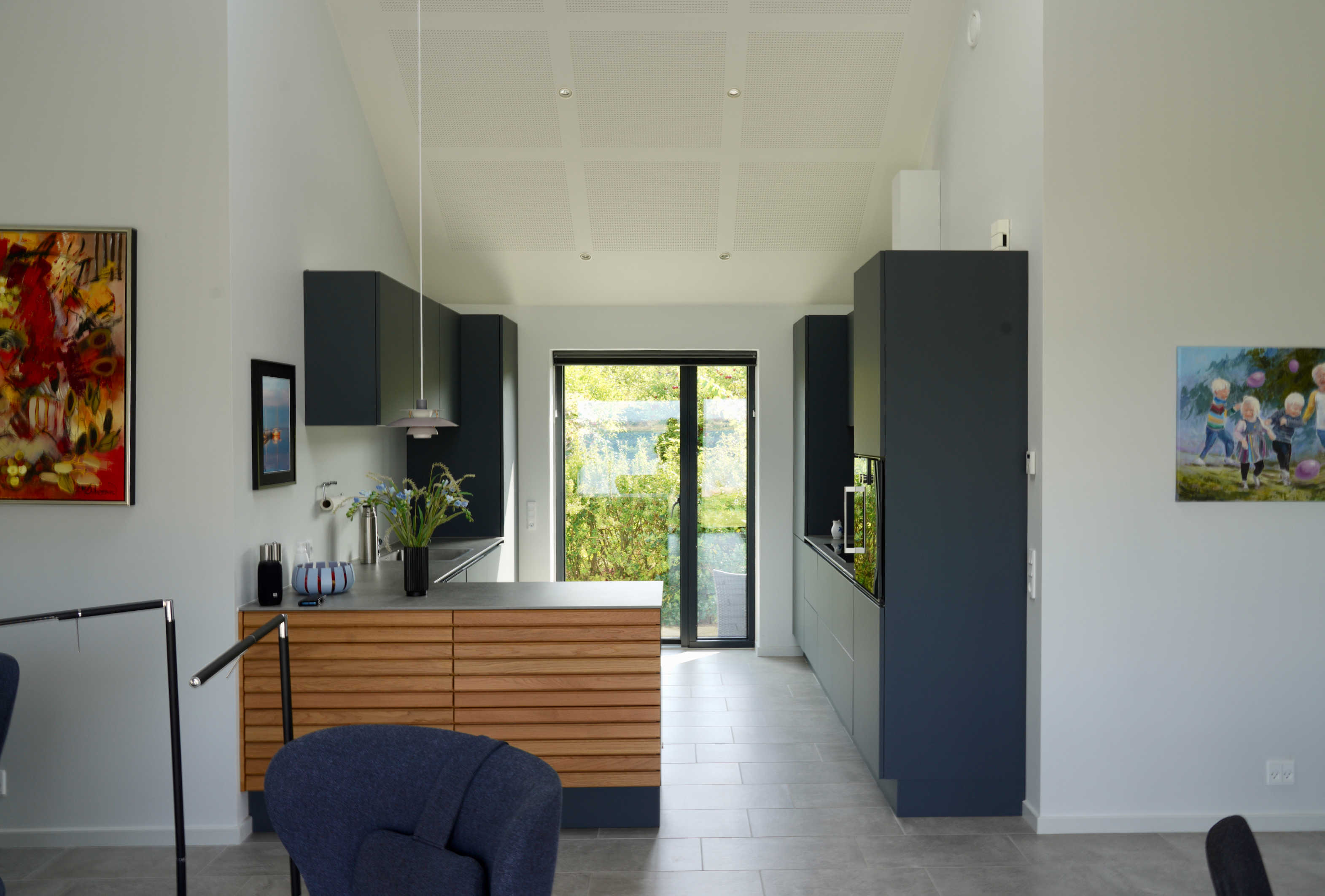 Husets arkitektur er ikke kun ren æstetik. De mange velovervejede detaljer samt valg af materialer og proportionering giver følelsen af at besøge et hjem og ikke bare et hus. Her er der skabt et hjem, der også er arkitektur.