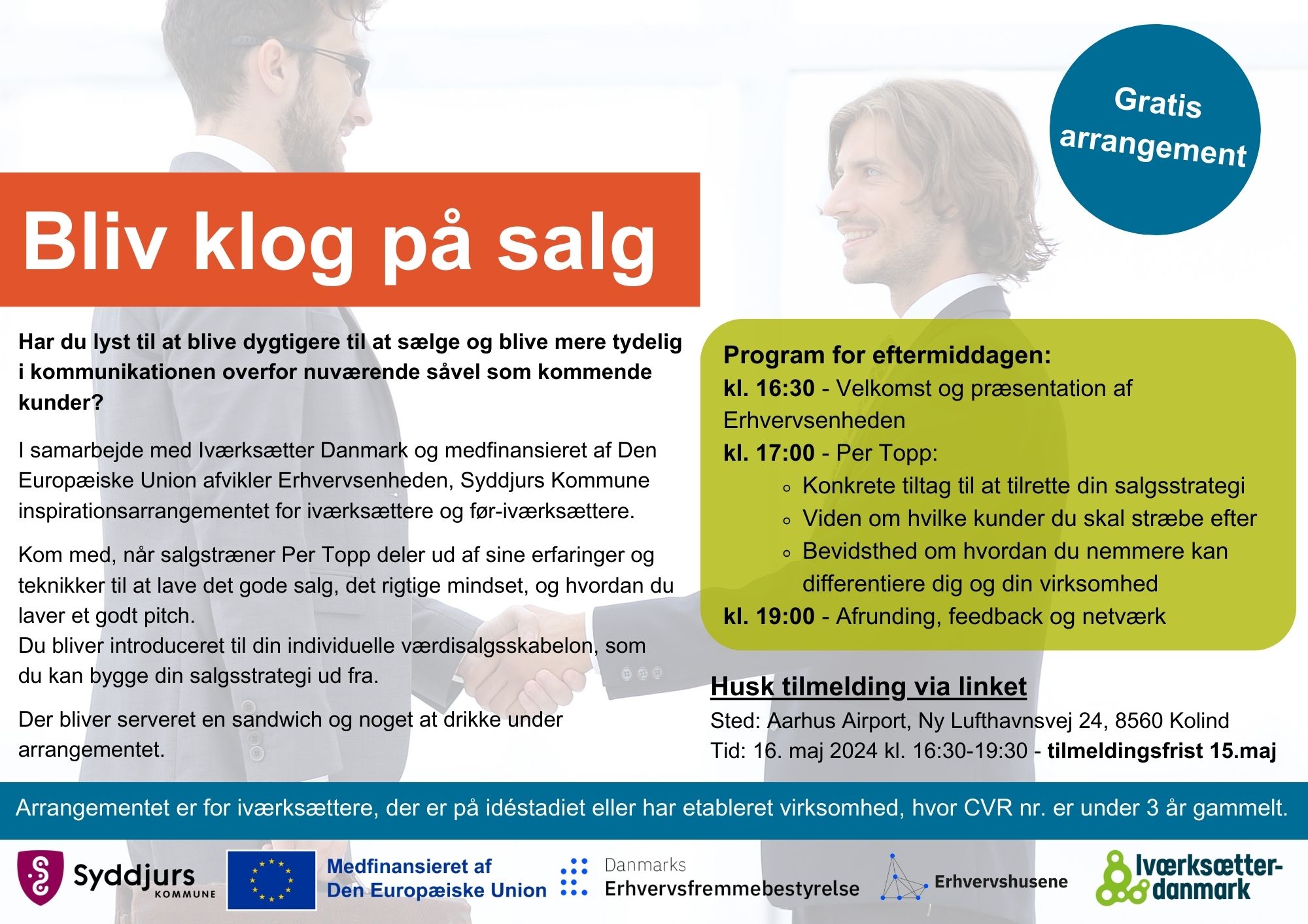 I samarbejde med Iværksætter Danmark, Erhvervshusene og medfinansieret af Den Europæiske Union afvikler Erhvervsenheden i Syddjurs Kommune dette inspirationsarrangementet for iværksætter og før-iværksætter.
