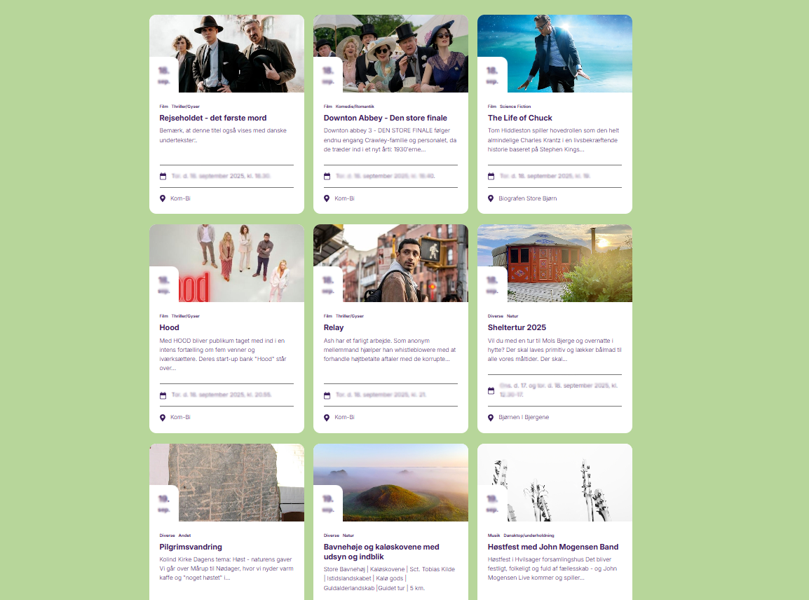Eventkalender - Uanset om du er til kunst, friluftsliv, børneaktiviteter eller lokale begivenheder, finder du inspiration og overblik her. Gå på opdagelse i de mange events, planlæg din næste udflugt, og lad dig begejstre af alt det Syddjurs har at byde på