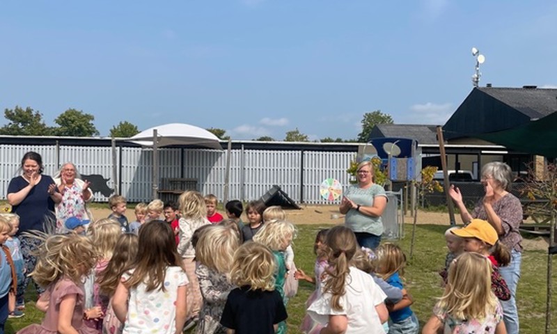 Efter frokost var det tid til bevægelse, og på legepladsen ved Mørke Børnehus ventede en stor gruppe børn og pædagoger på Borgmesteren.