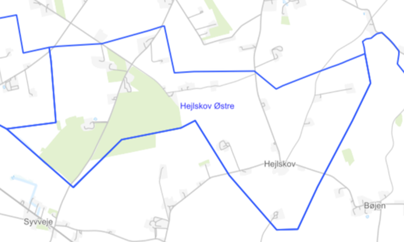 På kortet kan man se AquaDjurs - Hejlskov Østre Vandværks forsyningsområde.