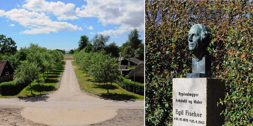 Oven for trappen, på toppen af Kirkebakken står mindesmærket for byplanarkitekt Egil Fischer