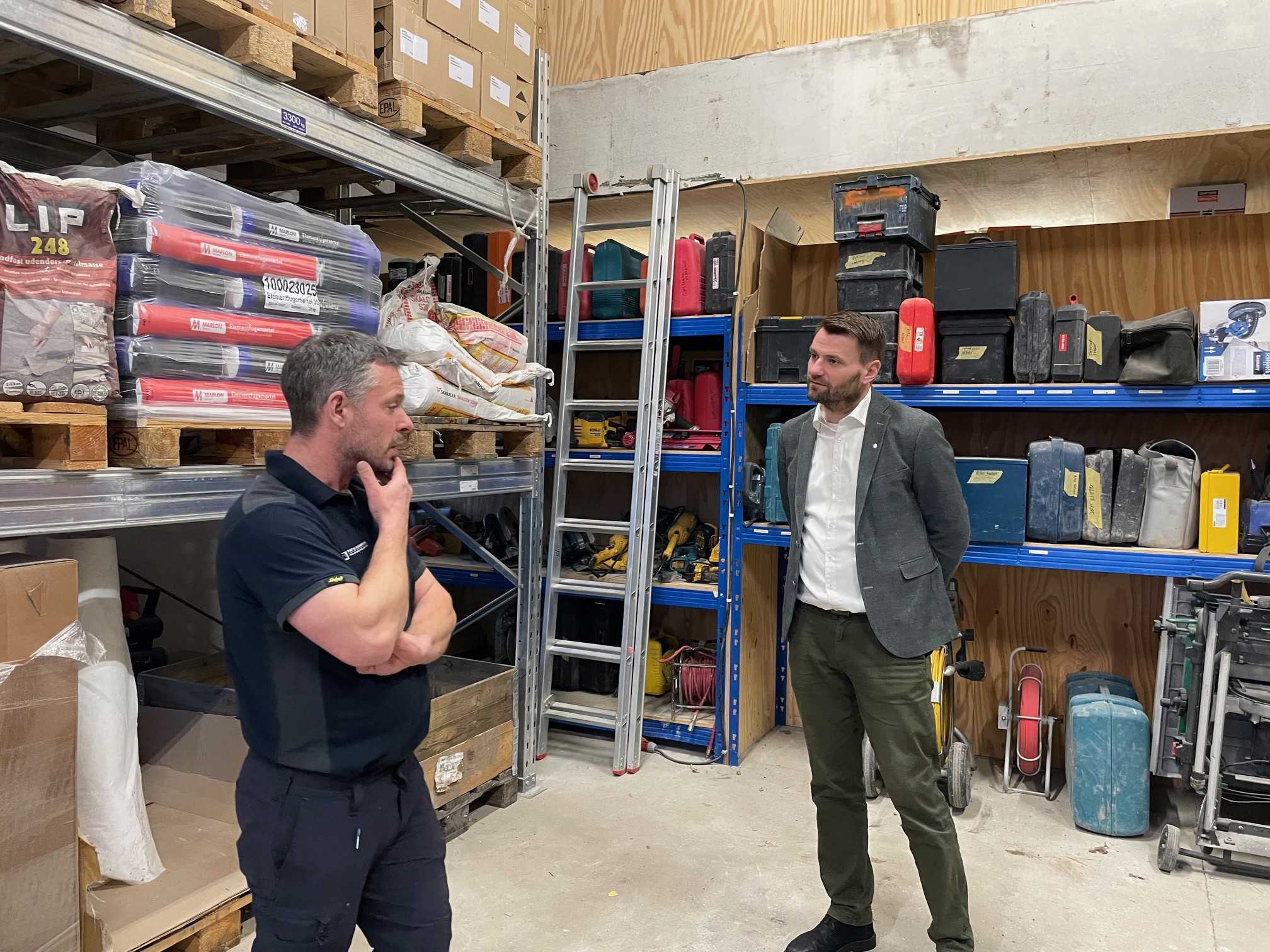 Alt slags værktøj, maskiner og materialer ryger i bilerne, når medarbejderne om morgenen fordeler sig ud på de mange forskellige byggepladser. Med et par skriveborde klemt inde øverst oppe i ejendommen har virksomheden vokseværk, og det blev der også lejlighed til at tale om.