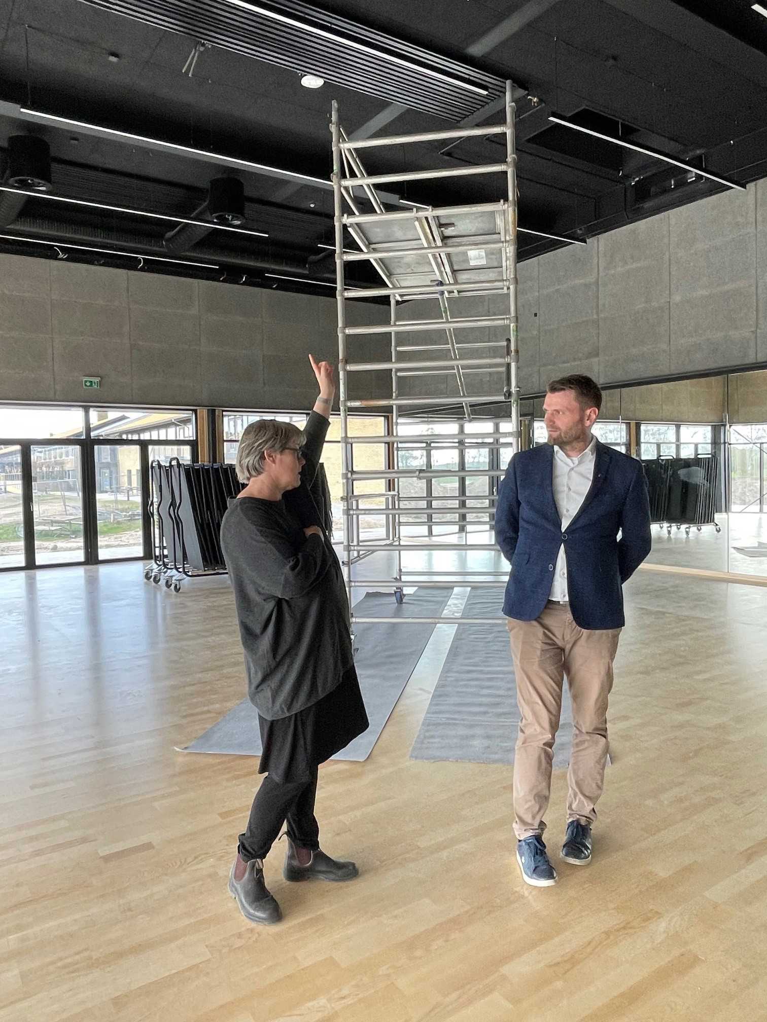 Herefter var der besøg på Molsværket på Lyngevej, hvor man er i den absolutte slutspurt forud for åbningen den 26. april. Her mødte Borgmesteren med værkfører Pia Katballe og formand for Ejendomsfonden Molsværket Grith Mortensen.