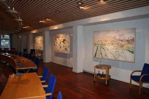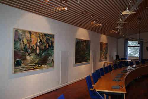 Udsmykningen af byrådssalen er udført af maleren Morten Skovmand fra Djursland, som har en lang række udsmykningsopgaver bag sig.