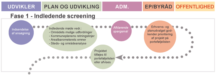 Formålet med denne fase er at skabe det bedst mulige grundlag for at igangsætte en ny lokalplan. Fokus ligger på at få overblik over alle relevante udfordringer og muligheder i det konkrete projektområde. Der indhentes og deles nødvendig viden mellem udvikler og administrationen på tværs af nødvendige fagområder. Det skal sikre en mere effektiv og mindre kompleks proces, når lokalplanen senere skal udarbejdes.