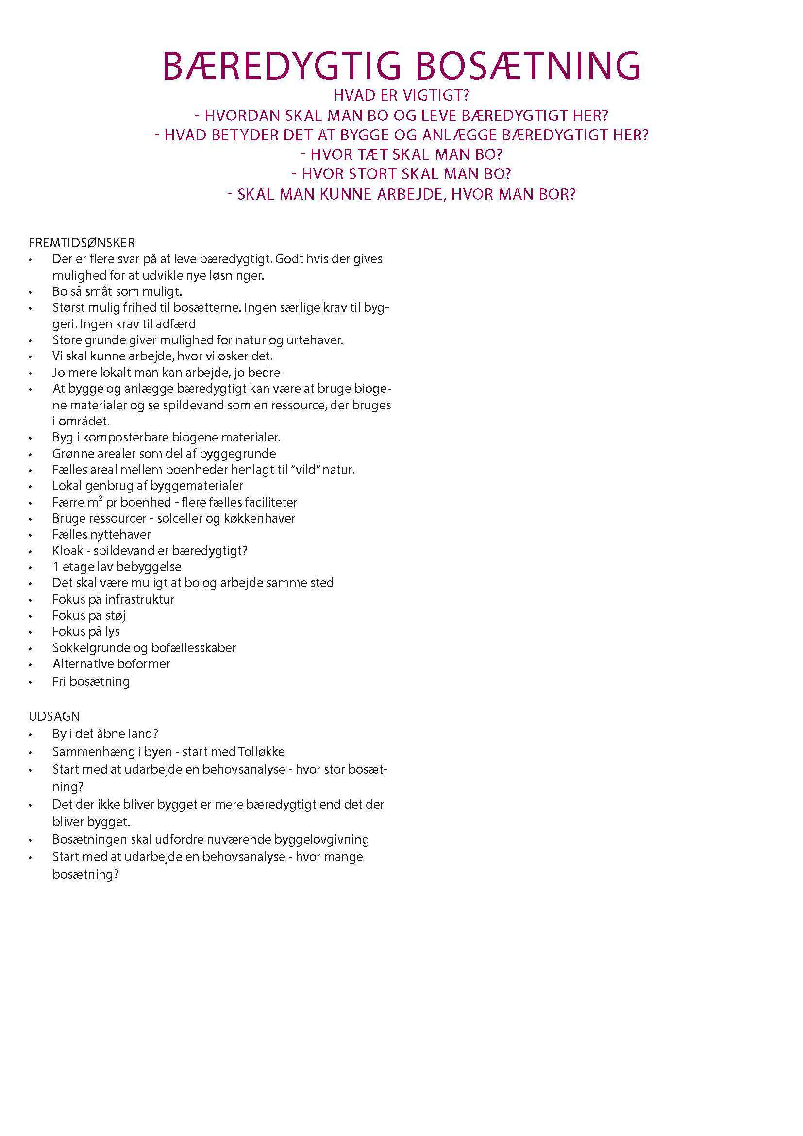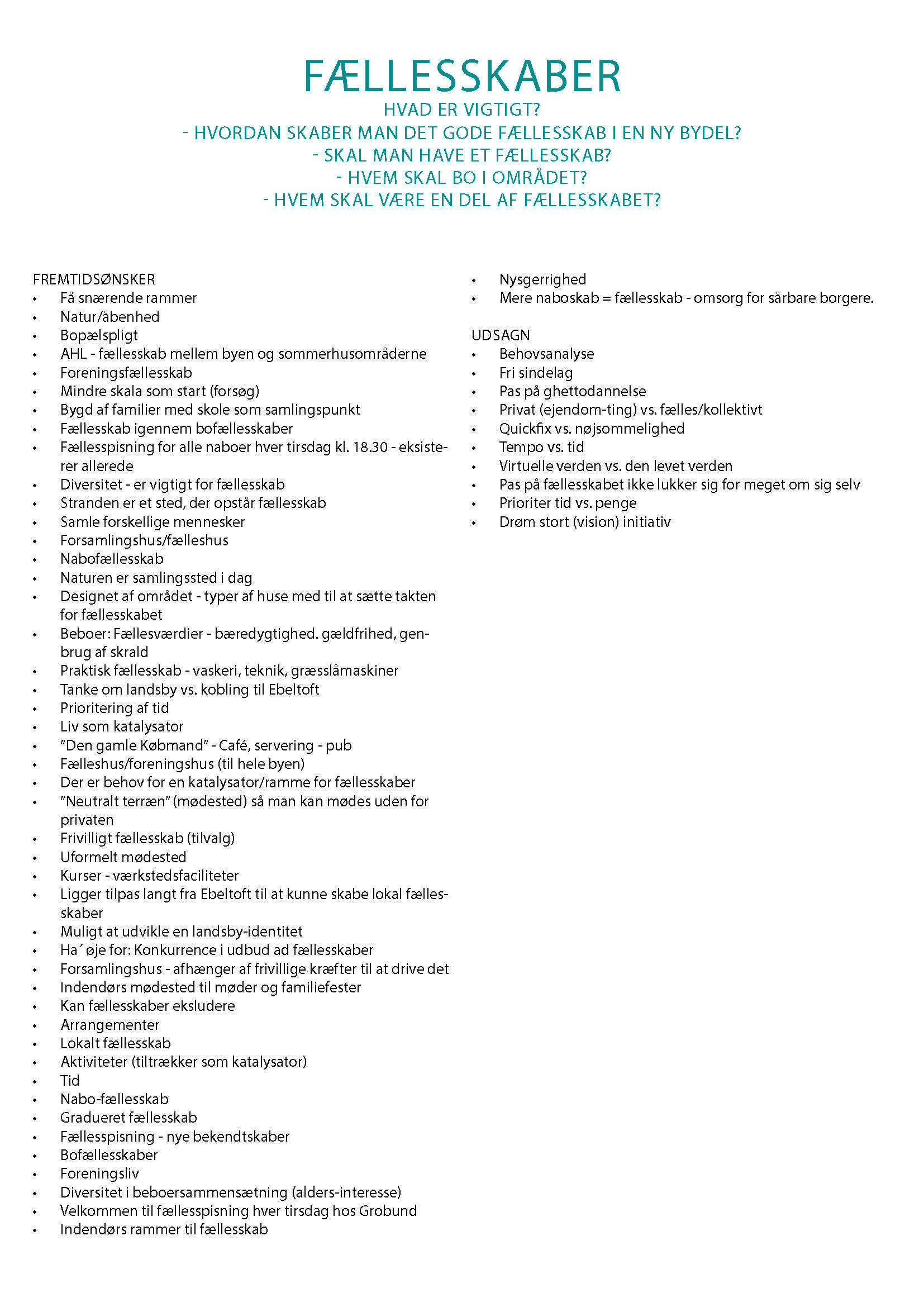 Se her de inputs borgerne kom med på borgermøder: