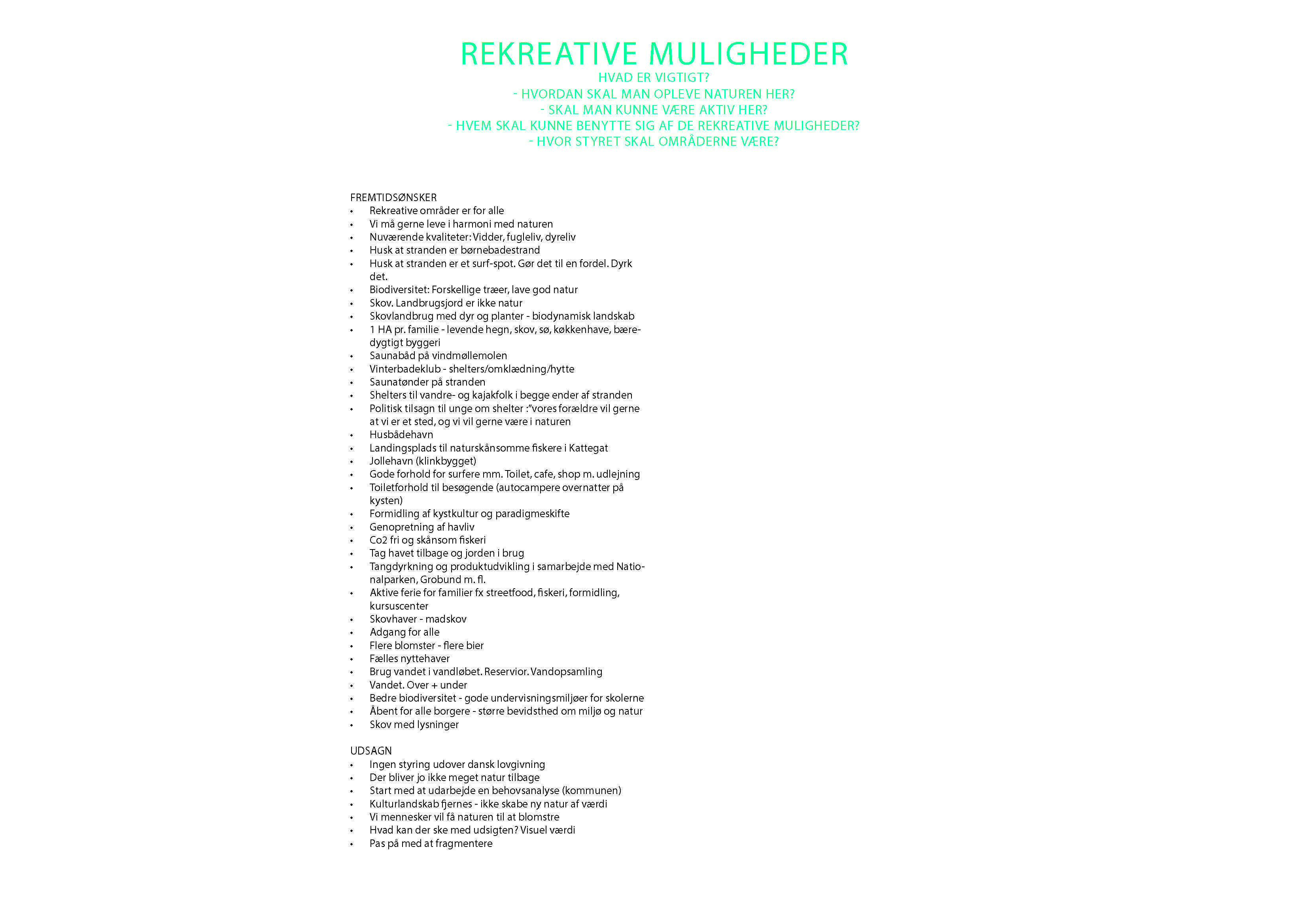 Borgernes interesse i rekreative forbindelser gennem området er fastholdt som en vigtig del af helhedsplanen, der sammen med kystens og natur områdernes rekreative muligheder giver en ekstra værdi til helhedsplanen
