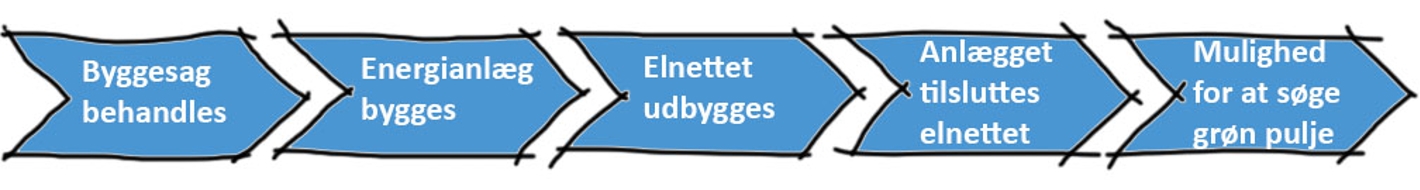 En privat udvikler eller fællesskab søger kommunen om lov til at stille et større anlæg op til energi. Inden ansøgningen er sendt til kommunen, kan der være en del aktivitet i lokalområdet.