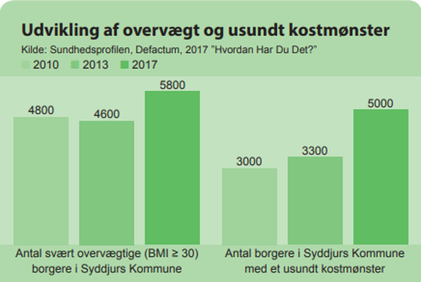 Undersøgelser viser at op mod 5000 borgere i Syddjurs Kommune har et usundt kostmønster, dvs. et kostmønster der følger få eller ingen af de officielle kostråd, og som har et lavt indtag af frugt, grønt og fisk samt højt indtag af fedt, især mættet fedt.